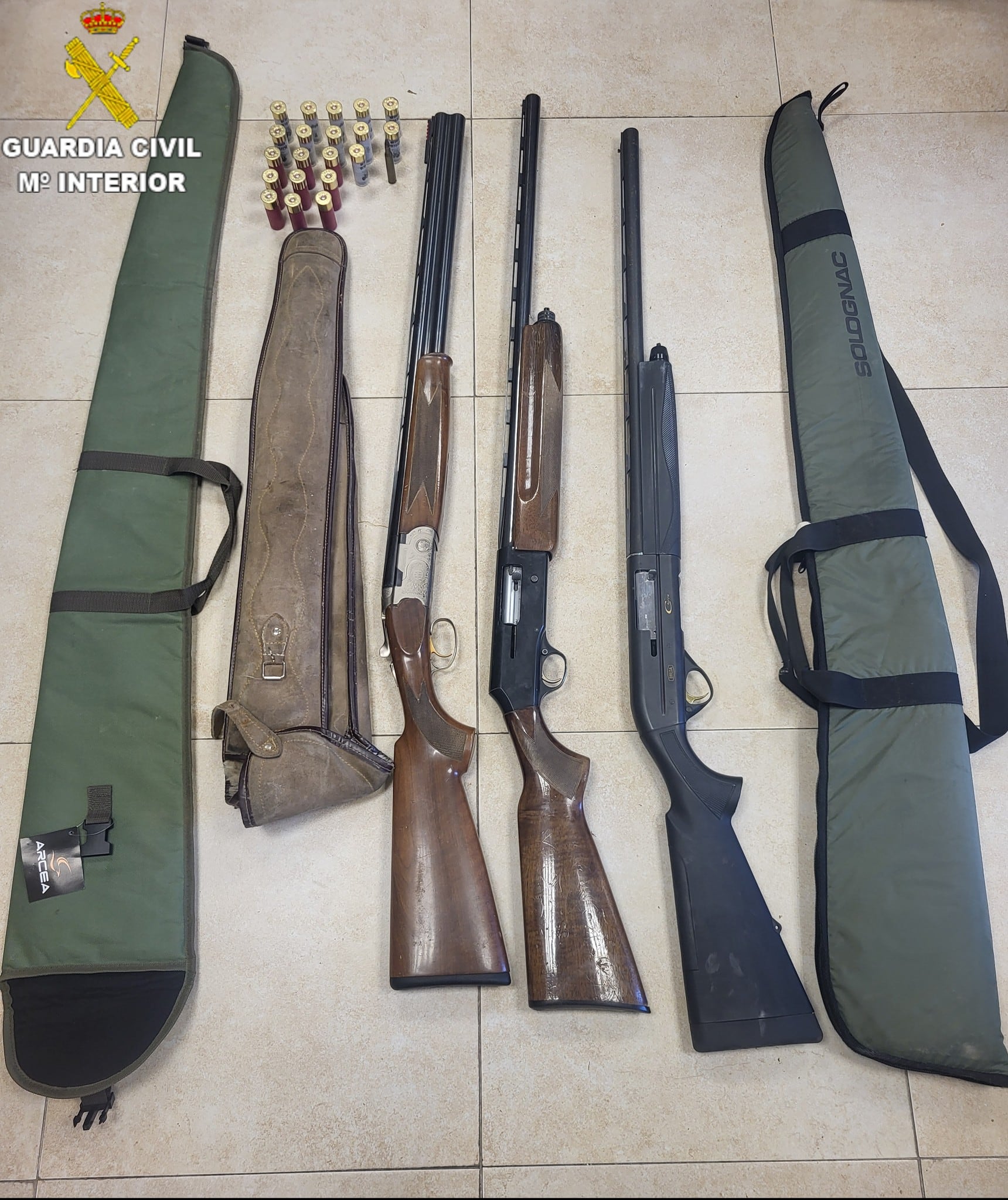 La furgoneta, sustraída en Tarancón, se recuperó en la Cañada Real de Madrid. En su interior había palas de pádel, documentación de vehículos, juegos de llaves y mandos de garaje, entre otras cosas. Además se han recuperado tres escopetas de caza junto con su munición que el detenido había escondido en un olivar de la zona.