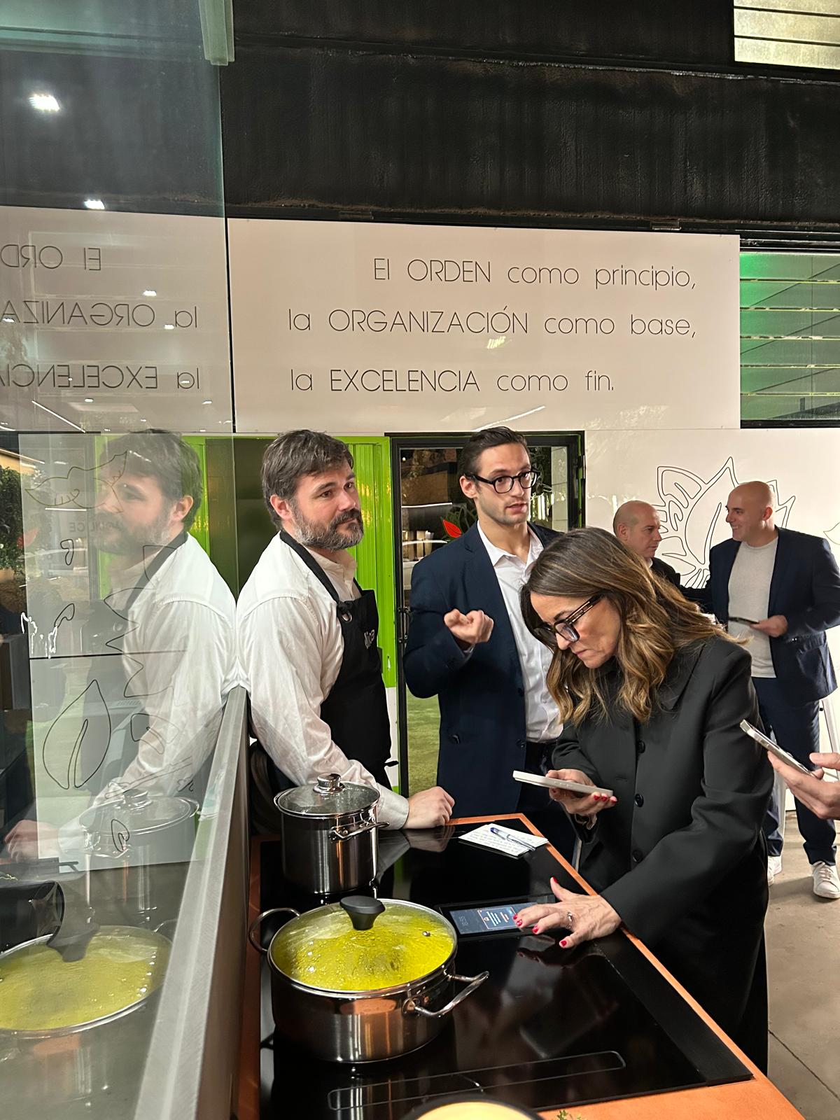 Se trata de un sistema "único en el mundo" que incluye en una misma pieza placa, horno y extractor. Estuvo Acompañada de Víctor, chef de Elica, quien explicó a los asistentes el funcionamiento de este novedoso electrodoméstico.