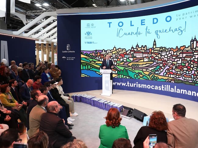 El alcalde de Toledo, Carlos Velázquez, ha presentado este sábado en la Feria Internacional del Turismo (FITUR), la campaña de turismo de la ciudad para el año 2026, en el marco de la celebración del Día de Toledo, dentro del stand de Castilla-La Mancha, donde ha subrayado que la nueva estrategia, “no solo define las acciones promocionales del año, sino la voluntad de lo que queremos ser como destino”.