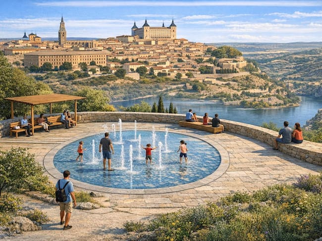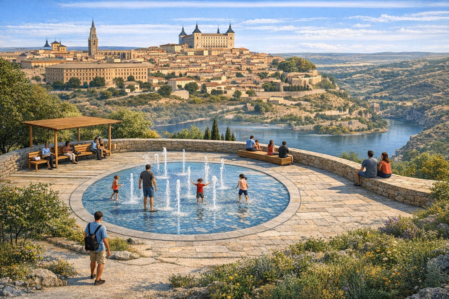Recreación de la fuente transitable que se ubicará junto al Parador de Toledo / Inteligencia Artificial