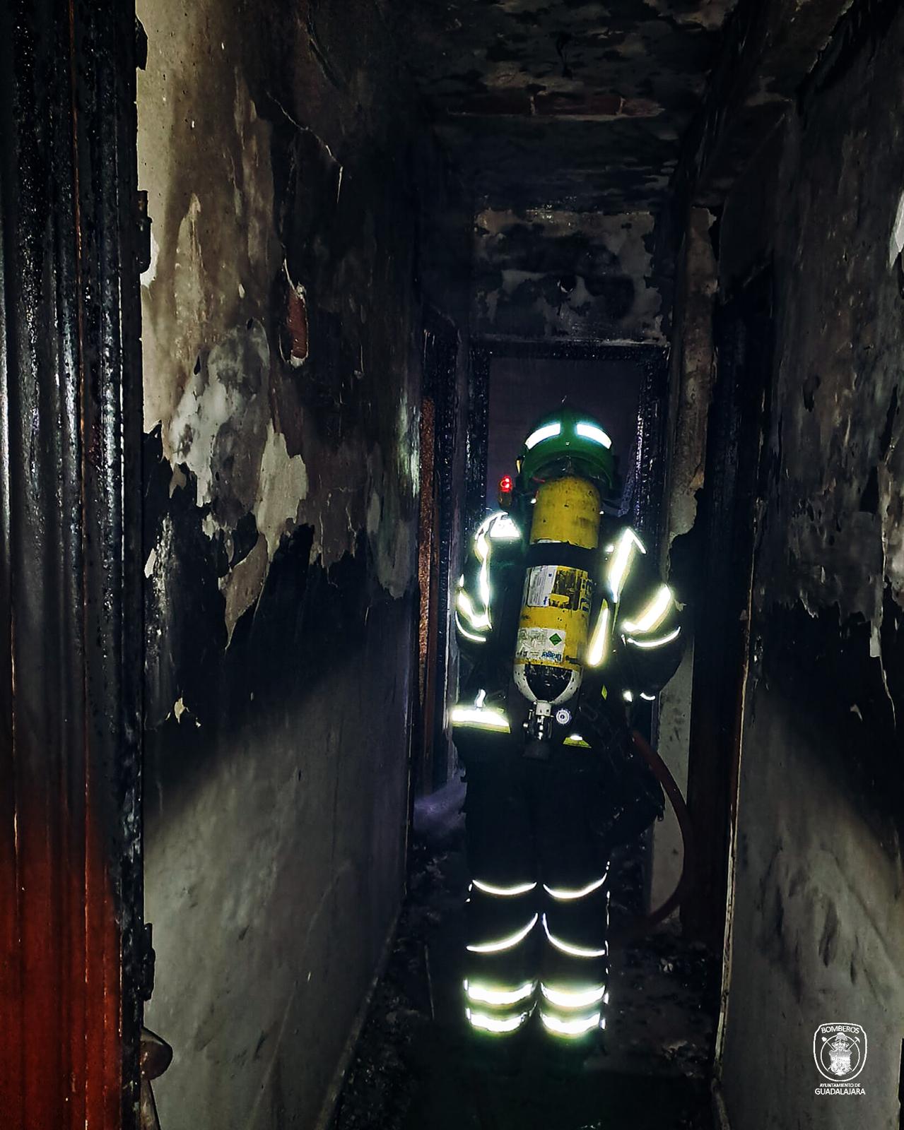 Pasillo de la vivienda incendiada / Bomberos Ayto. GU
