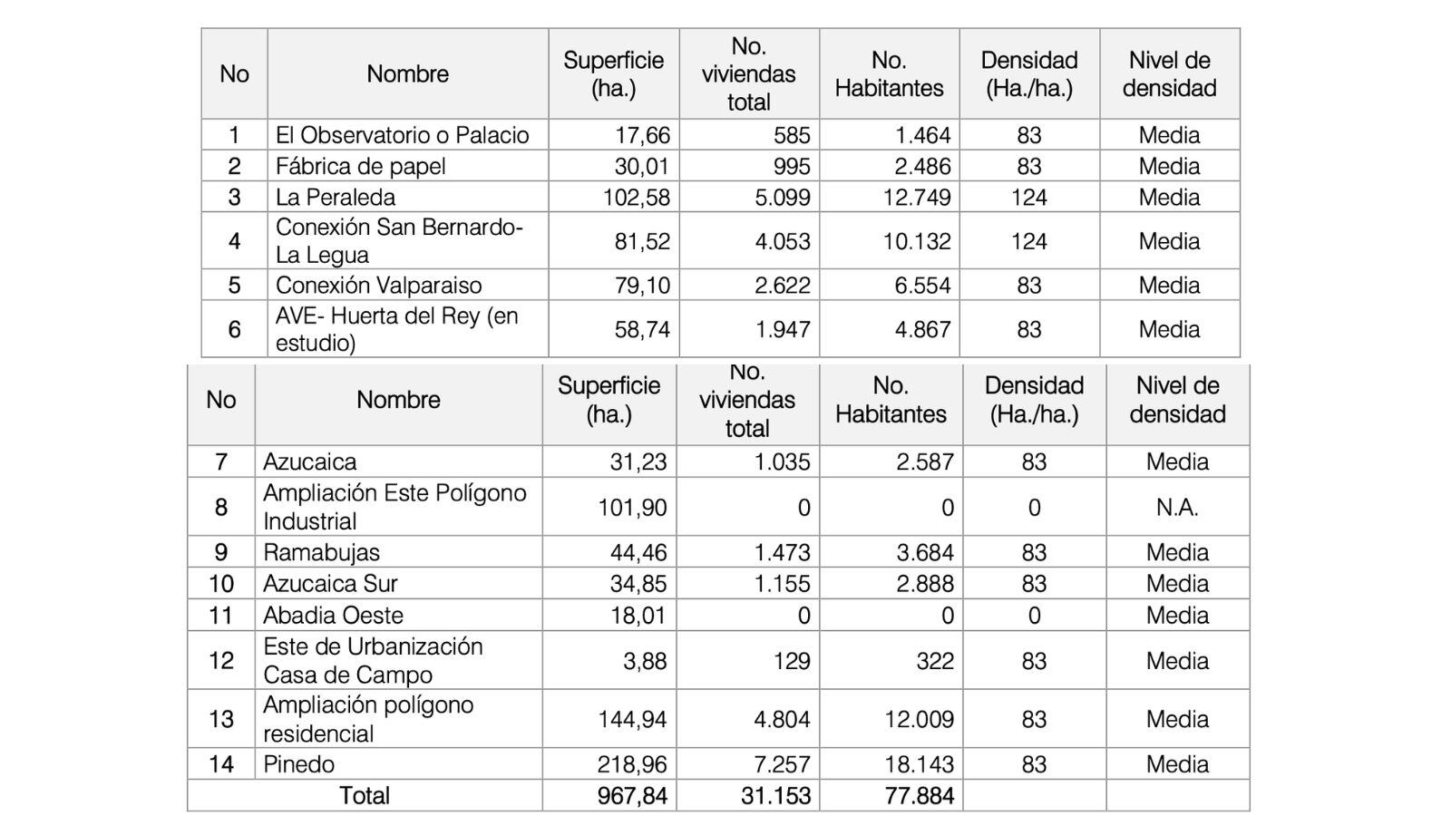 - Benquerencia Sur: De 4.804 viviendas a 4.141 viviendas.