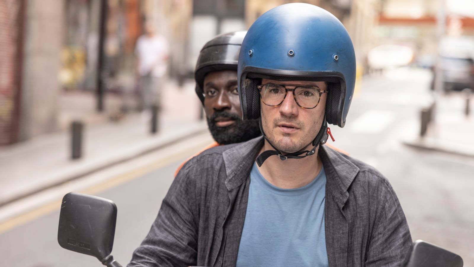 Los actores, Lander Otaola y Malcom Treviño-Sitté, en un momento del rodaje de la serie 'Detective Touré'