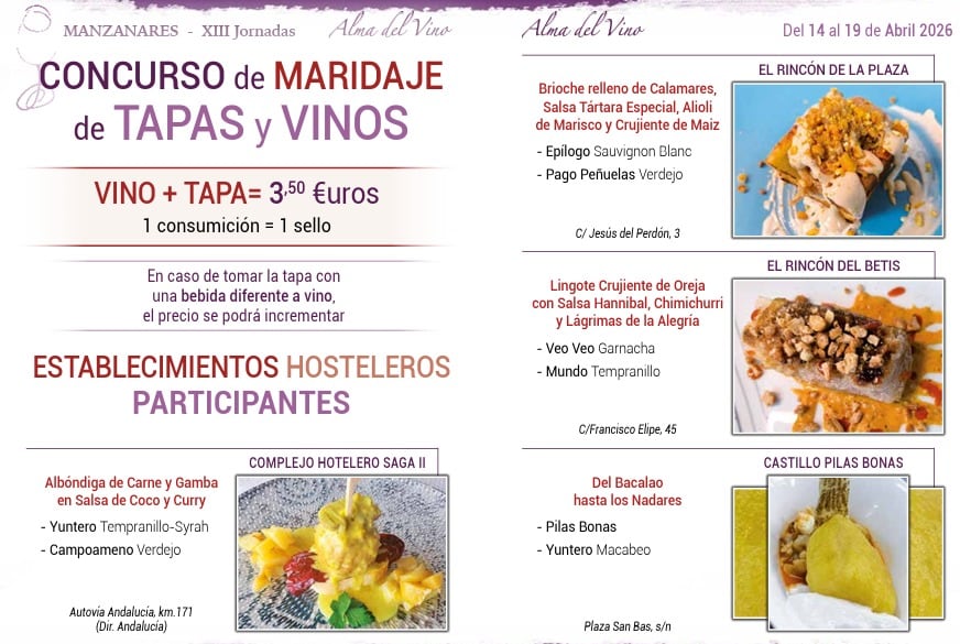 Uno de los platos fuertes será el tradicional concurso de maridaje de tapas y vinos, en el que participarán diez establecimientos hosteleros de la localidad. Durante el fin de semana, vecinos y visitantes podrán degustar propuestas gastronómicas especialmente diseñadas para acompañar los vinos locales.