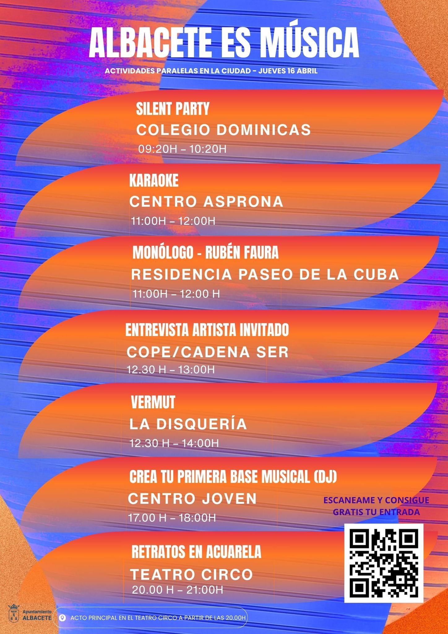 Además, durante toda la jornada del jueves 16 de abril, vecinos y visitantes podrán descubrir curiosidades, vídeos y contenidos sobre artistas locales a través de una red de códigos QR distribuidos en puntos estratégicos de la ciudad, transformando las calles de Albacete en un museo digital interactivo.