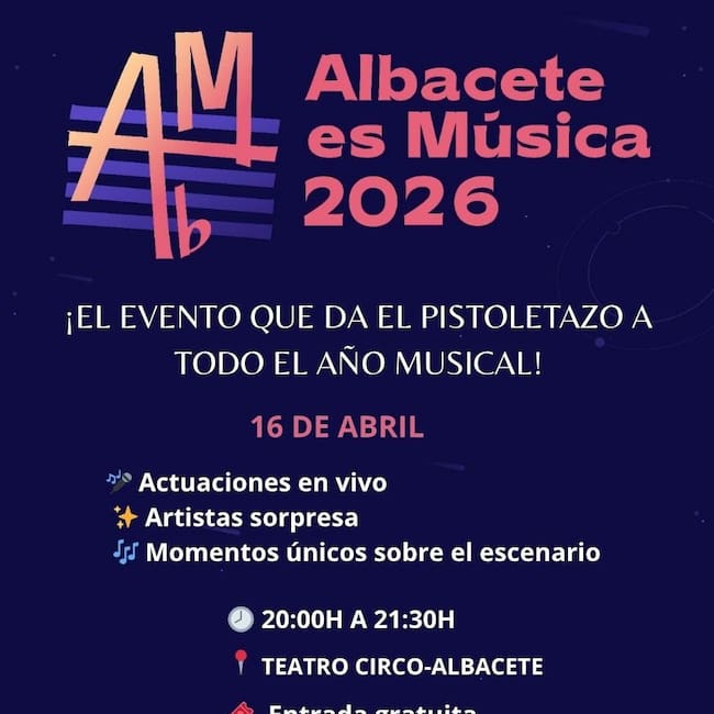 El broche final llegará a las 20 horas en el Teatro Circo de Albacete, con la gala de presentación oficial de “Albacete es Música 2026”.