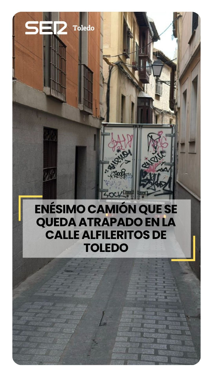 Enésimo camión que se queda atrapado en la calle Alfileritos de Toledo