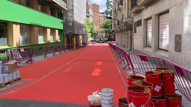 Se trata de un pavimento antideslizante, de base asfáltica y tintado de manera industrial que ya se aplicó el pasado verano en el vial de la plaza de Santa Ana, en las calles María de Molina y Pasión y en parte de 20 de febrero.