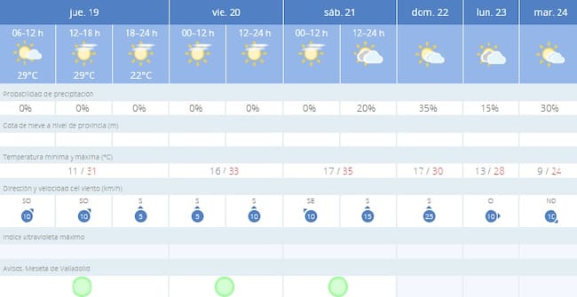 La previsión de la Agencia Estatal de Meteorología para Peñafiel durante las próximas jornadas de esta 1º ola de calor de la temporada