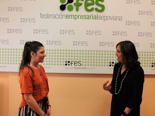 La secretaria general de la Federación Empresarial Segoviana (FES), Beatriz Escudero, y la presidenta de la Asociación de Ucranianos de Segovia, Maryana Radvanska, han mantenido hoy un encuentro para estudiar vías de colaboración que ofrezcan la ayuda necesaria a las personas desplazadas temporalmente hasta la provincia de Segovia tras el abandono de su país por la invasión bélica por parte de Rusia.