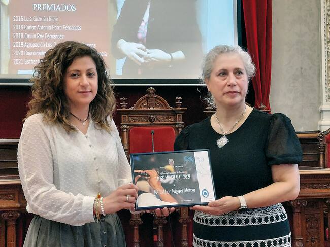 La folclorista Esther Miguel Alonso ha recibido hoy, de manos de la diputada provincial del Área de Cultura de la Diputación de Palencia, Carolina Valbuena, el VII Premio Provincial de Folclore “José María Silva” que convoca anualmente, en memoria y reconocimiento al insigne folclorista, músico, dulzainero, estudioso y maestro del folclore castellano y, en especial del folclore palentino, para destacar y valorar públicamente la trayectoria de particulares, asociaciones o entidades en la defensa y divulgación de los valores del folclore y la cultura tradicional y popular palentina en cualquiera de sus manifestaciones.