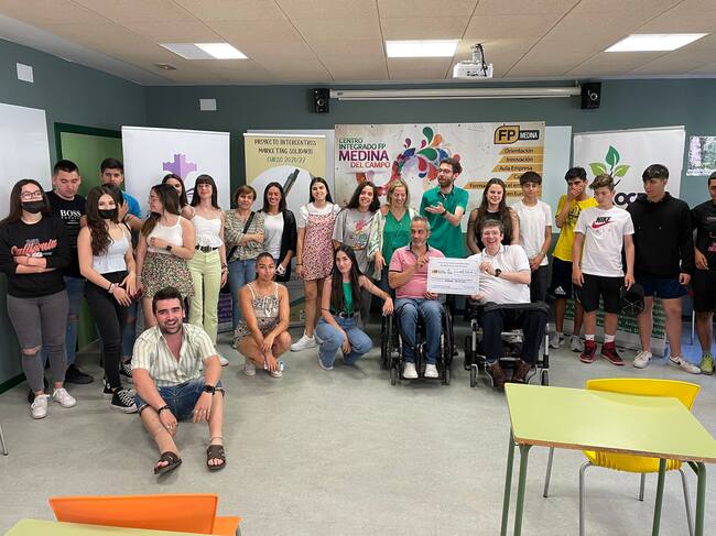 El proyecto intercentros de marketing solidario es un trabajo que han realizado los alumnos del modulo de marketing en la actividad comercial del Centro Integrado de Formación Profesional de Medina del Campo y los alumnos del colegio Pablo VI en Ávila. Hoy ponen el broche final con una jornada en la que se entrega el dinero recaudado a la asociación Aspaym.