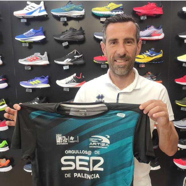 Chuchi Jorques posa en Artiza con la camiseta de la carrera nocturna / Deportes Artiza