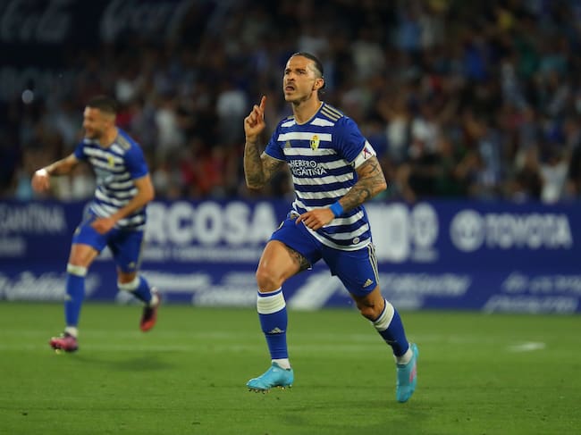 Ríos Reina celebra un tanto esta temporada con la Ponferradina / SD Ponferradina