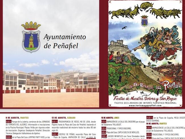 El programa de Fiestas de San Roque 2022 ya se puede descargar desde la web de Turismo del Ayuntamiento de Peñafiel