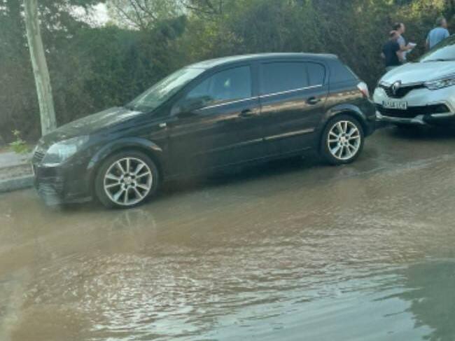 El agua corría por Vía Roma tras la rotura de la tubería provocando cierto riesgo en la conducción