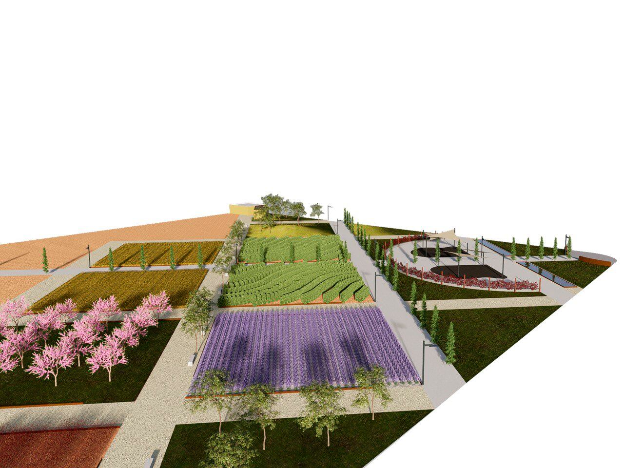 La idea es que los colores del parque vayan cambiando con cada estación observando así la evolución de los cultivos. También habrá zonas de esparcimiento infantil. Se trata de una obra comprendida en el contrato de nuevas zonas verdes, dotado con un millón cuatrocientos mil euros. En él también se incluye la ampliación y mejora del Parque de Juan Morano. Además de mantener y reparar las actuales instalaciones, también se aprovecharán mil metros cuadrados de terreno anexo para crear nuevas zonas de actividades: habrá un pequeño espacio para espectáculos, mesas de picnic y zonas de sombra.