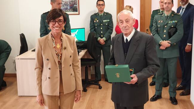 María Gámez, Directora de la Guardia Civil, junto al subteniente Marino Borrego, el Guardia Civil retirado de más edad en Palencia / Ana Mellado