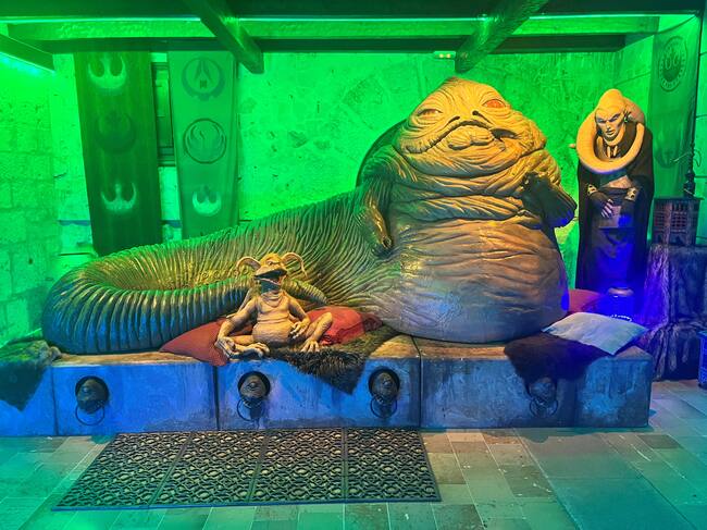 El recorrido va acompañado por la música original y proporciona una experiencia inmersiva gracias también a la iluminación específica de cada entorno, desde las zonas heladas del planeta Hoth, pasando por la sala central del palacio de Jabba el Hut, el Ala X de Luke Skywalker o un 'rancor' de varios metros de alto. El taller de Juan Villa es el artífice de todo este universo y el tiempo que tuvo durante la pandemia le llevó a crear junto a su equipo toda esta exposición que no sólo es para los 'frikis' de STAR WARS o los niños, sino para cualquier aficionado al cine o al arte, ya que cada figura lleva implícito un nivel de detalle que roza la perfección. Por menos de 10 euros, viernes, sábados y domingos se puede visitar y las entradas se pueden reservar en www.puertoespacial.es así como ver una galería de imágenes de lo que te vas encontrar en el recorrido. En este enlace puedes escuchar la entrevista con Juan Villa, creador de este Puerto Espacial tan especial.