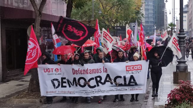 'Hemos visto como se han acabado las medidas de apoyo a los migrantes, a las mujeres y al diálogo social desde la entrada de la ultraderecha ' han explicado los secretarios comarcales de UGT y CCOO, Omar Rodríguez y Ursicino Sánchez respectivamente.