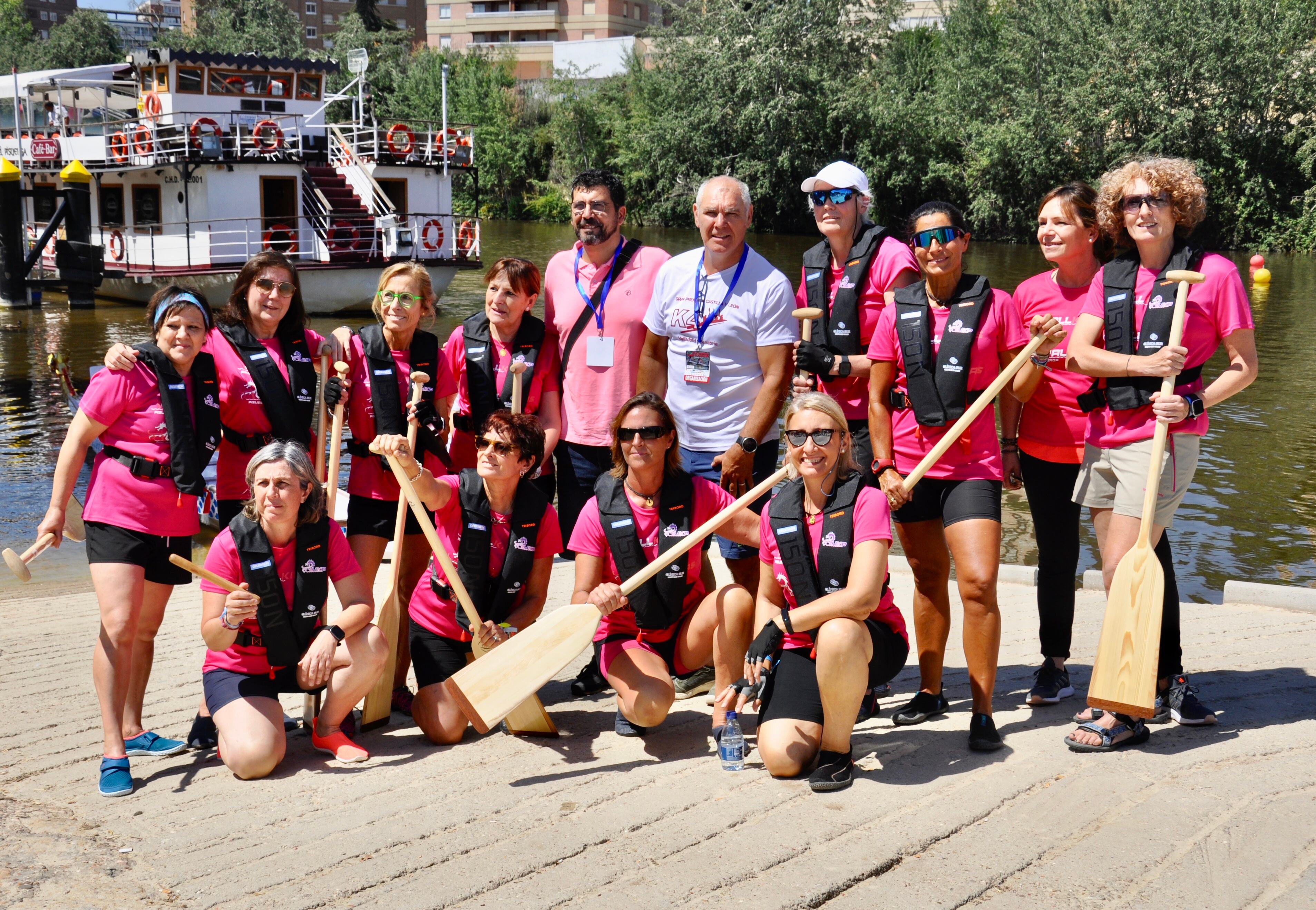 El cáncer es una de las mayores lacras del tiempo moderno, pero hay muchas maneras de afrontarlo. Nuestras Vallkirias del Pisuerga decidieron hacerlo de frente y con el deporte como arma. Diversos estudios demuestran que, tras superar un cáncer de mama, remar es un ejercicio excelente para culminar esa recuperación y de ahí nace el proyecto que tiene como objetivo ayudar a otras mujeres que ahora lo están pasando, lo tienen reciente o van a comenzar con todo el duro proceso, además de concienciar al resto, siempre con la medicina preventiva, las ‘benditas revisiones’. El Dragon Boat es una embarcación en la que 10 o 20 palistas tienen que bogar de manera acompasada siguiendo el ritmo que marca el ‘tambor’ y la embarcación tiene como característica que lleva una cabeza de dragón en la proa y la cola de este mitológico animal en la popa. Toda la tripulación está formada por mujeres que han pasado o están pasado por ese trance y su objetivo, al margen de entrenar dos días a la semana a las órdenes de Narciso Suárez en el club Cisne, es subirse al cajón lo antes posible, es decir, ambición no les falta y voluntad tampoco, sin duda todo un ejemplo de superación. Les costó algo de tiempo tener su propio barco, pero ahora que ya lo tienen, se han convertido en imparables.