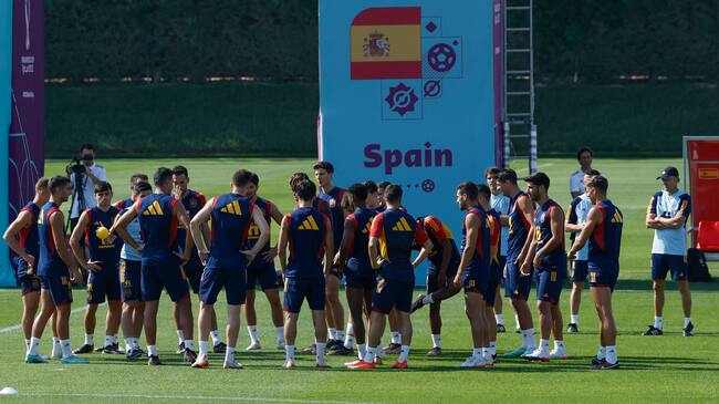 DOHA, 04/12/2022.- La selección española entrenó este domingo en la Universidad de Catar ("Qatar University") en Doha, Catar, este domingo. España se enfrentará a Marruecos el martes 6 de diciembre en un encuentro de octavos de final del Mundial de fútbol Qatar 2022. EFE/JuanJo Martín / JuanJo Martín (EFE)