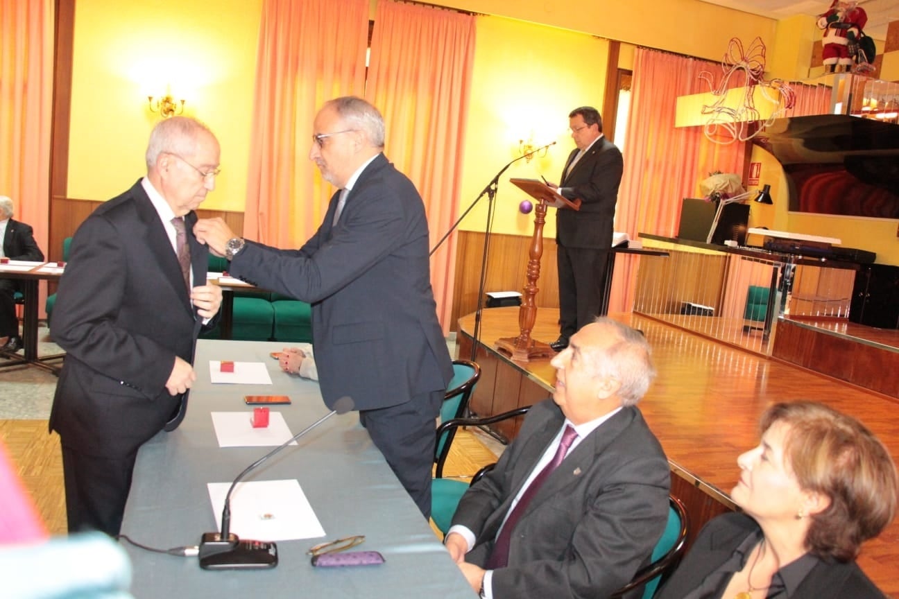 El alcalde de Ponferrada, Olegario Ramón, presidió el acto de imposición de insignias de oro y plata a los socios más veteranos de la sociedad de La Obrera, un acto en el que ejerció de mantenedora la directora de la coral Solera Berciana, Teresa Portela, quien se mostraba agradecida por la colaboración que hay entre ambas sociedades.