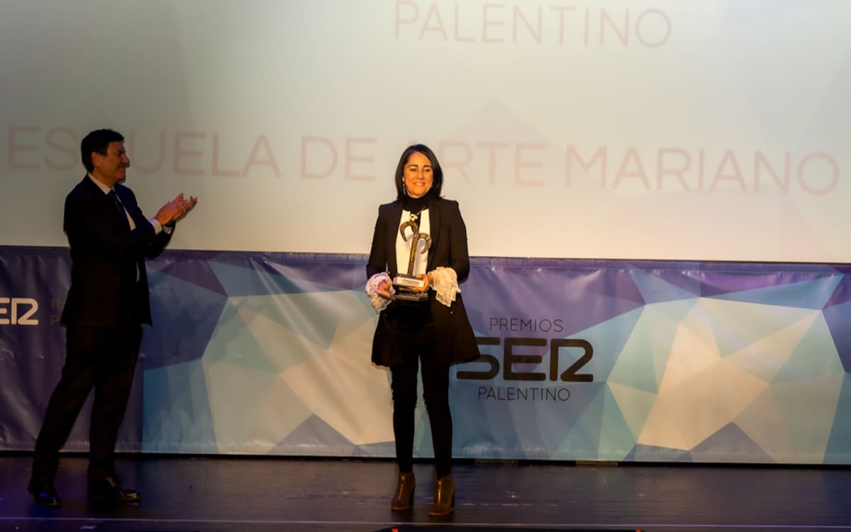 Aránzazu Rebollo (centro), directora de la Escuela de Artes Mariano Timón, centro premiado en Ser Palentino 2022