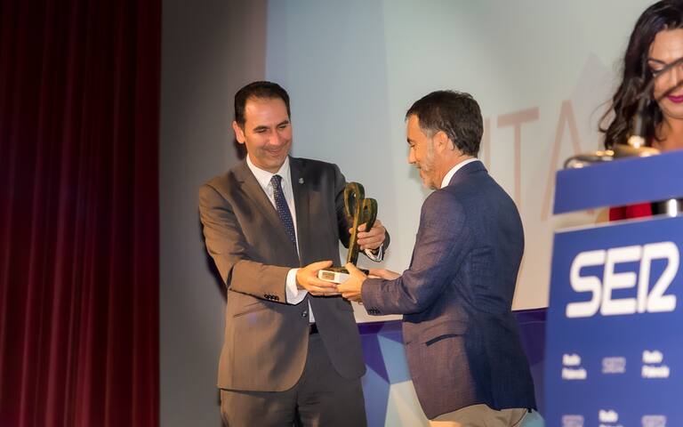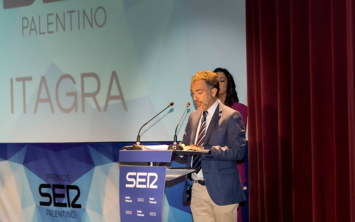 Asier Sáiz, director de ITAGRA, en el momento en que recogía el Premio Ser Palentino otorgado a la entidad