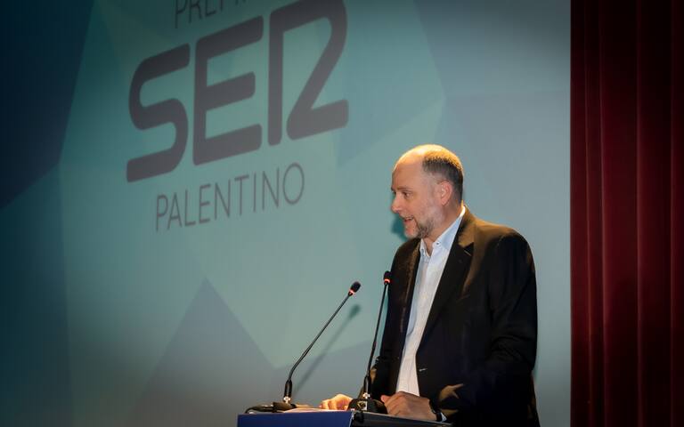 Ramiro Vega, director de la Cadena Ser en Castilla y León, se dirigió a los asistentes en la gala de entrega de los Premios Ser Palentino 2022