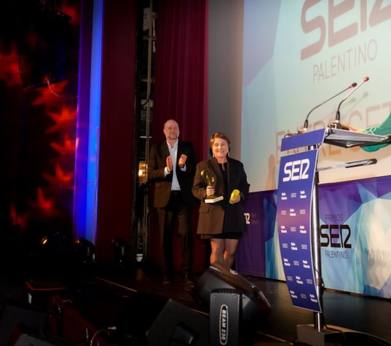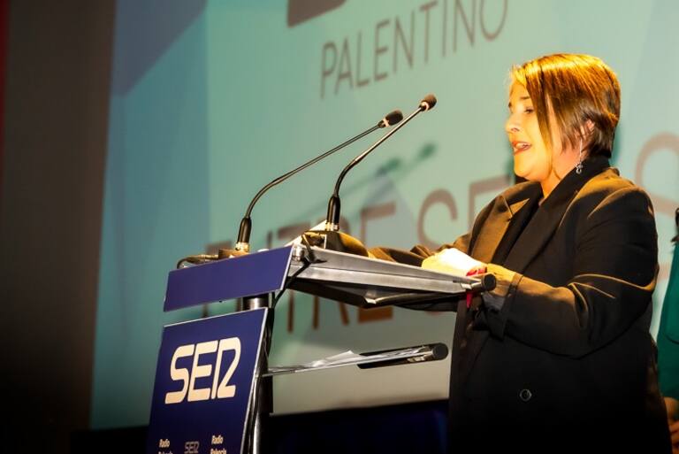 Nazaret Mateos, responsable de EntreSetas, recogiendo su Premio Ser Palentino