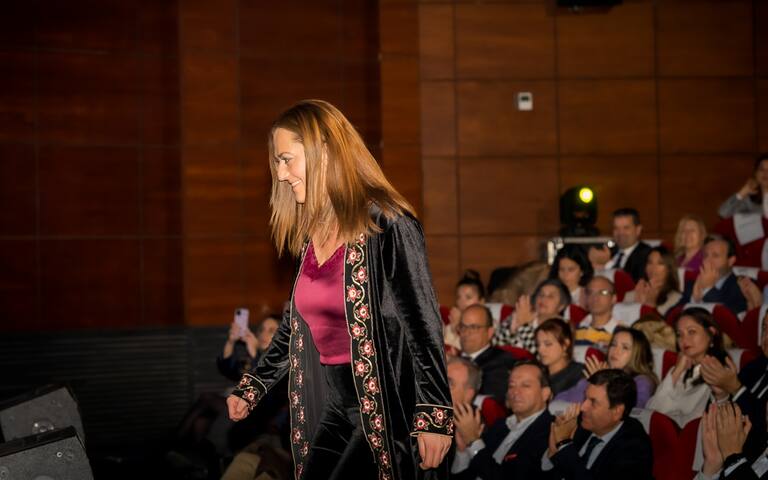 Nazaret Mateos en su discurso de agradecimiento tras recoger el premio otorgado a su empresa, EntreSetas
