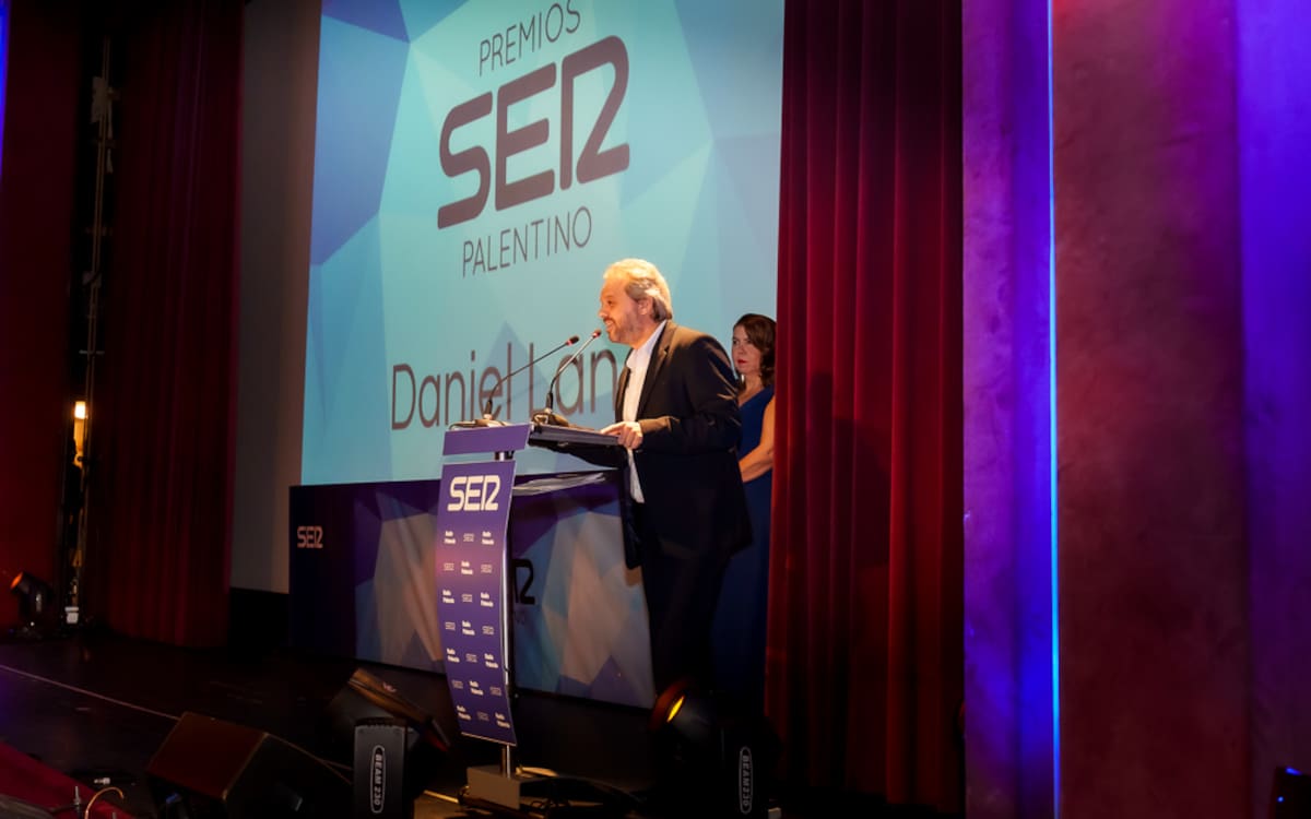 El periodista Daniel Landa durante su discurso de agradecimiento al recoger su Premio Ser Palentino