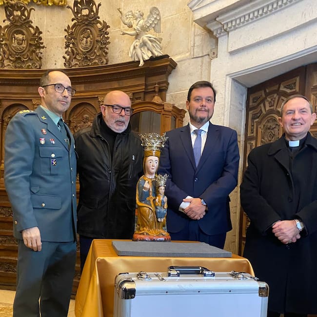 En el acto de restitución de las piezas, celebrado hoy en la Catedral de Burgo de Osma, participaron el secretario general de Cultura y Deporte, Víctor Francos; el jefe de la Comandancia de la Guardia Civil de Soria, Andrés Manuel Velarde; el obispo de la Diócesis de Burgo de Osma, Abilio Martínez; y el alcalde Noviercas, Pedro Jesús Millán. También ha contado con la asistencia del subdelegado Gobierno en Soria, Miguel Latorre.