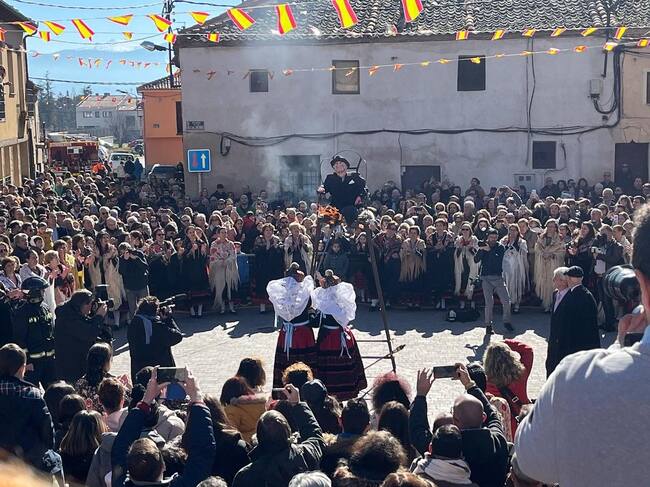 La fiesta de Santa Agueda en Zamarramala ha reunido a cientos de segovianos en esta tradición que fue declarada de Interés Turístico Nacional en el año1968. Zamarramala vivía su día grande este domingo 5 de febrero con el nombramiento de las Aguederas Honorarias (título concedido este año a la alcaldesa, Clara Martín, además de a Sara Dueñas, Marta Soler y Susana Marote), el pregón a cargo de Samantha Vallejo-Nájera, la concesión del Ome Bueno e Leal a la periodista segoviana Macarena Bartolomé Lobo y la entrega del premio Matahombres de Oro 2023 a Carmen Mola (Jorge Díaz, Agustín Martínez y Antonio