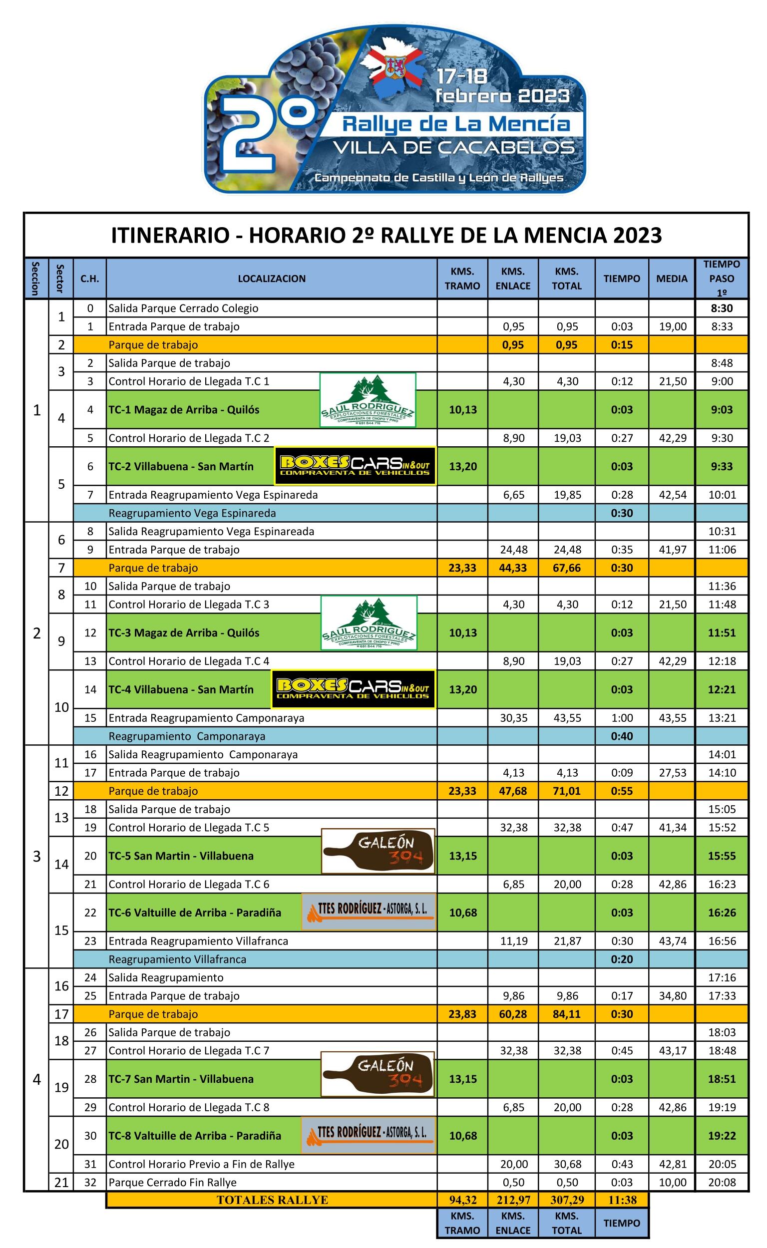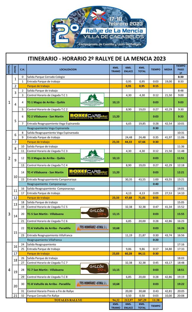 Dos tramos de mañana que se repiten y otros tantos por la tarde componen el Rallye de la Mencía