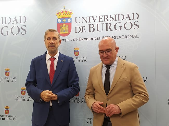 El rector de la UBU, Manuel Pérez Mateos (izda), y el consejero de Presidencia de la Junta, Jesús Julio Carnero, han suscrito un convenio para la formación de secretarios municipales / Radio Castilla