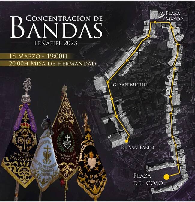 El cartel promocional del pasacalles de las bandas de cornetas y tambores de las hermandades de Peñafiel