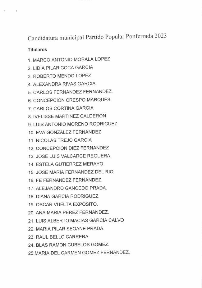 Lidia Coca, en el número dos y Carlos Cortina en el número siete, son los únicos que repiten en la candidatura de Marco Morala que acaba de hacer pública el comité electoral provincial y que recupera a exconcejales del periodo de Gloria Fernández Merayo, de Carlos López Riesco e incluso de Ismael Álvarez.