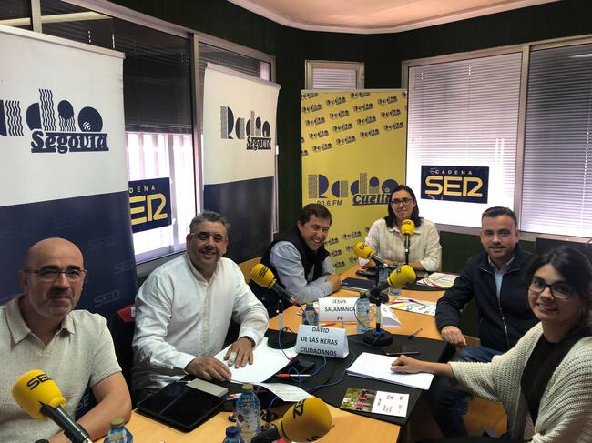 Bloque 1 Urbanismo, Patrimonio y Servicios. Debate electoral en Radio Cuéllar con los candidatos de PSOE con Carlos Fraile; PP con Jesús Salamanca; IU con Lucía Arranz; Ciudadanos con David de las Heras y Centrados con Miguel Ángel Senovilla.