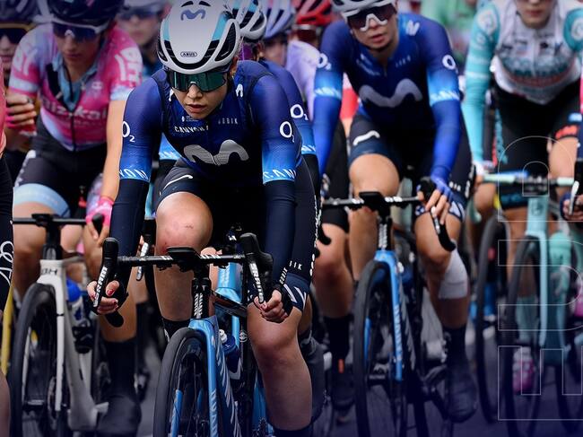 Sara Martín con los colores de Movistar durante una prueba de la presente temporada