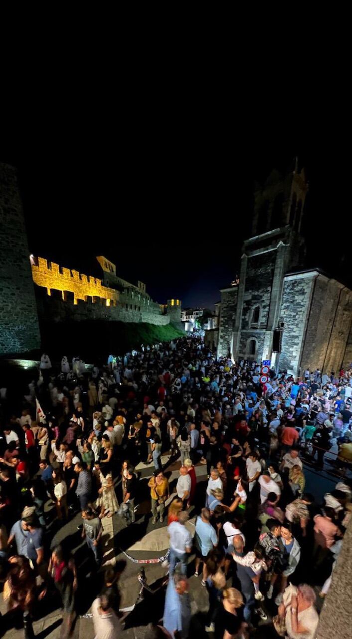 El púbico abarrotó el Puente García Ojeda y el entorno del Castillo para asistir al desfile que este año estuvo precedido por la performance de un dragón de fuego y coronado por fuegos artificiales