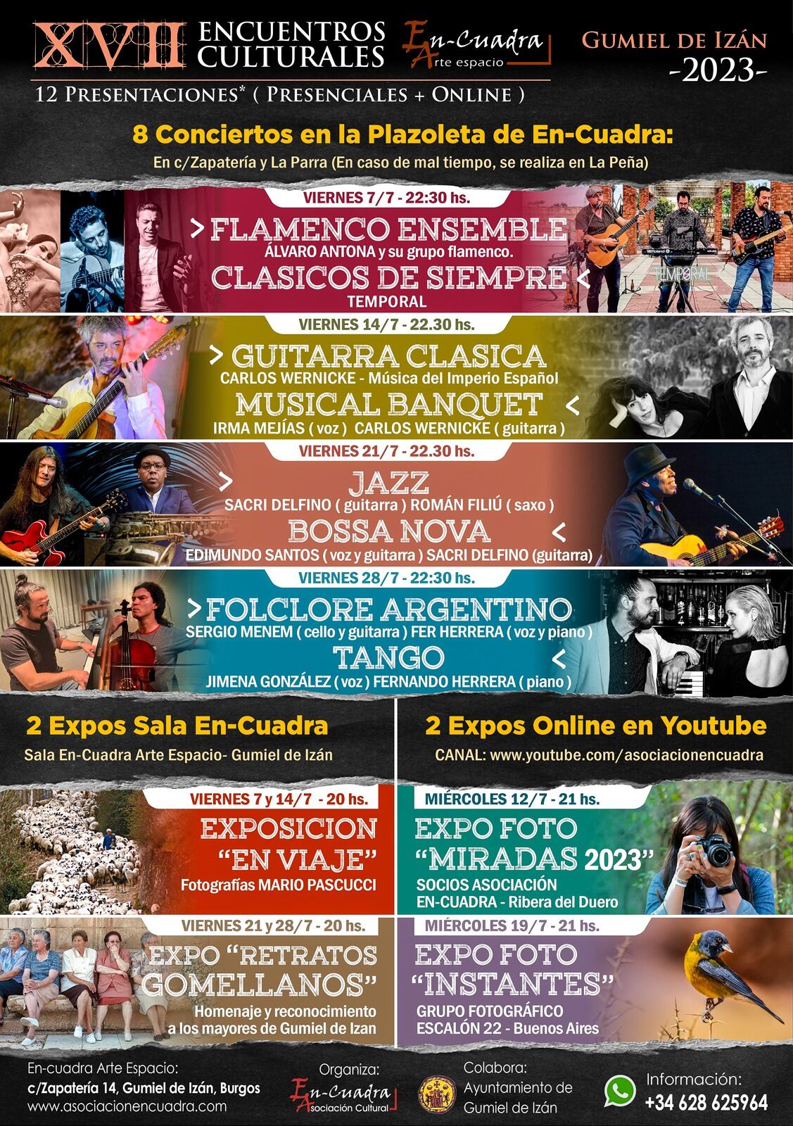 Los Encuentros Culturales de En Cuadra, que cuentan con la colaboración del Ayuntamiento de Gumiel de Izán, incluyen, como otras veces, hasta cuatro exposiciones fotográficas. Dos de ellas se pueden ver en la sala de la asociación y otras dos de forma online en Youtube.