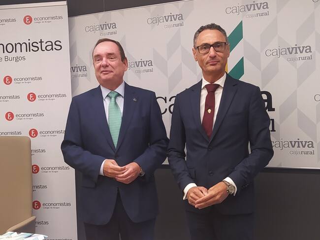 El director general de Caja Viva en Burgos, Ramón Sobremonte (izda) junto al decano del Colegio de Economistas, Carlos Alonso de Linaje / Radio Castilla