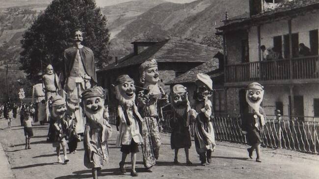Gigantes y cabezudos de Villafranca del Bierzo / Postal de época