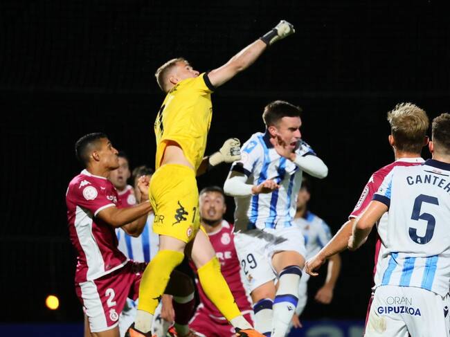 Bañuz durante el partido ante la Real Sociedad B.