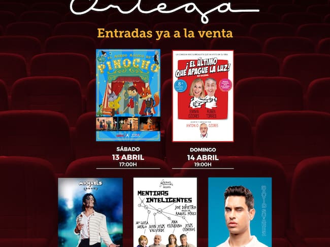 ‘¡El último que apague la luz!’ tiene un precio único de 22 euros y conseguirá que los asistentes formemos parte de una surrealista historia. El viernes 26 de abril rendiremos homenaje al gran Michael Jackson con el espectáculo de música en directo ‘Michael’s Legacy’. Este show de gran formato, apto para todas las edades, ofrece el concepto de actuación que tenía el rey de pop en sus giras con una escenografía muy cuidada, réplicas exactas de las canciones originales y un toque especial dado por la Jackson Dance Company. Este increíble grupo artístico, que saltará sobre las tablas del Teatro Ortega a las 20:30 horas, está formado por un elenco de cerca de una veintena de profesionales y cuenta con el mejor impersonator del rey del pop, Ximo MJ, con gran parecido físico y capaz de reproducir a la perfección cada movimiento y gesto que distinguían a este artista. Las entradas para este homenaje a Michael Jackson tienen un precio desde 18 euros. Más humor para terminar el mes Al día siguiente, sábado 27 de abril, asistiremos a una comedia de secretos matrimoniales. En ‘Mentiras inteligentes’, Alicia sospecha que algo no va como debería al notar a su marido preocupado. El caos se desencadenará mientras busca la verdad en una cena con su hijo y su nuera, al destaparse una serie de confesiones que nadie esperaba. María Luisa Merlo, Juan Jesús Valverde, Ana Escribano y Jesús Cisneros se preguntarán qué necesitamos para ser felices en esta disparatada e hilarante obra teatral. A veces no estamos contentos con las cartas que nos han tocado para la vida y barajamos si quedarnos con ellas o buscar otras que nos proporcionen la ansiada felicidad, llevándonos a mentir para evitar algún que otro desastre. El desastre en este matrimonio se desatará a partir de las ocho de la tarde, en una comedia teatral con un precio desde 18 euros.
