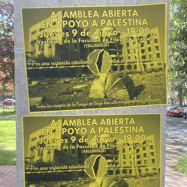 Siguiendo la estela de varias universidades españolas, donde ya hay campamentos en apoyo a Palestina, la facultad de Filosofía y Letras de Valladolid vivirá mañana una asamblea abierta, a partir de las 19 horas en el vestíbulo del edificio.