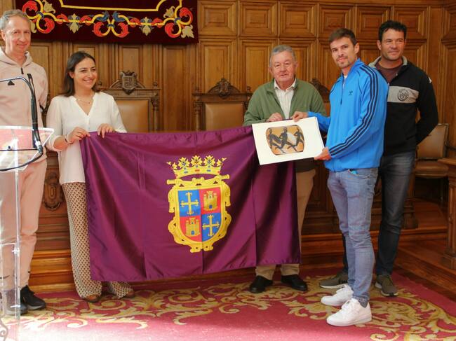 OBSEQUIO. La presentación del XXXVI Trofeo Feria Chica de Atletismo, ha sido aprovechada por la alcaldesa de la ciudad, Miriam Andrés, para dar la enhorabuena a Óscar Husillos por su hazaña haciéndole entrega en nombre de la Corporación Municipal de una bandera de Palencia y de una carpeta con infografías de las imágenes en las vasijas de los primeros Juegos Olímpicos.