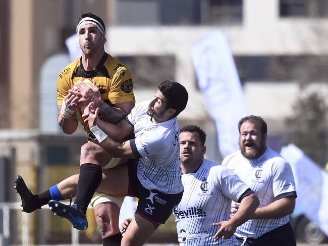 Facundo Sacovechi atrapando el oval en un partido ante el Ciencias de Sevilla. / Foto: Aparejadores Burgos